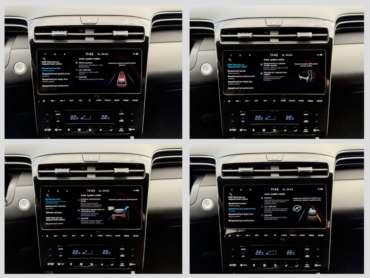 ABS, Airbagy, Alarm, ASR, Centrálne zamykanie, DSC, EBD. ESP, Imobilizér, Isofix, Adaptívny tempomat, Parkovacia kamera, Deaktivácia airbagov, Systém kontroly tlaku v pneumatikách (TPMS), Natáčacie svetlomety, LED svetlomety, Systém tiesňového volania (e-Call), Upozornenie premávky za vozidlom, Systém rozpoznania únavy vodiča (DAW), Airbag 7x